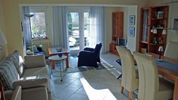 Die FeWo hat eine Südterrasse und liegt nur ca. 150 Meter vom Südstrand entfernt. Das Stadtzentrum, Kurmittelhaus, Hallenbad, Bäcker, Schlachter u.a. Einkaufsmöglichkeiten sind in wenigen Gehminuten zu erreichen. Kategorie: ***